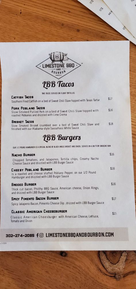 Limestone BBQ and Bourbon Menu (2025 Update)